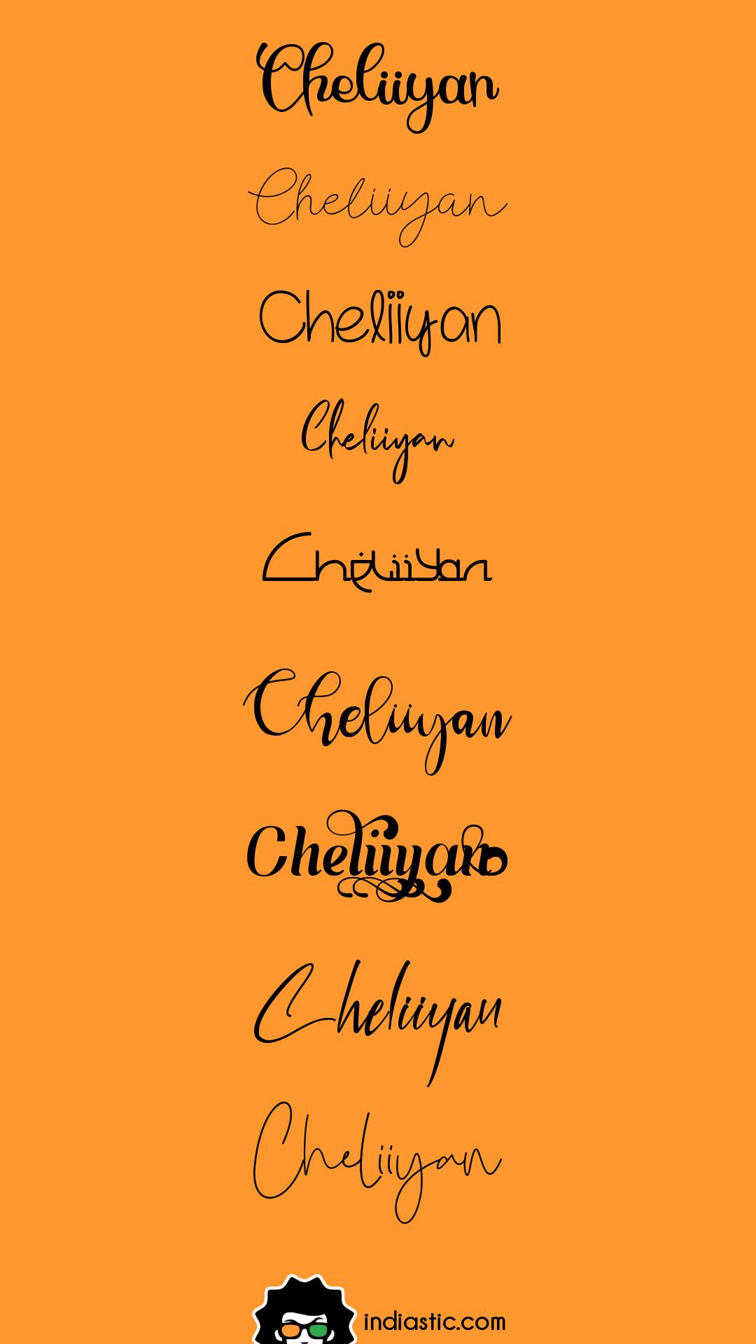 Cheliiyan signature with different styles.